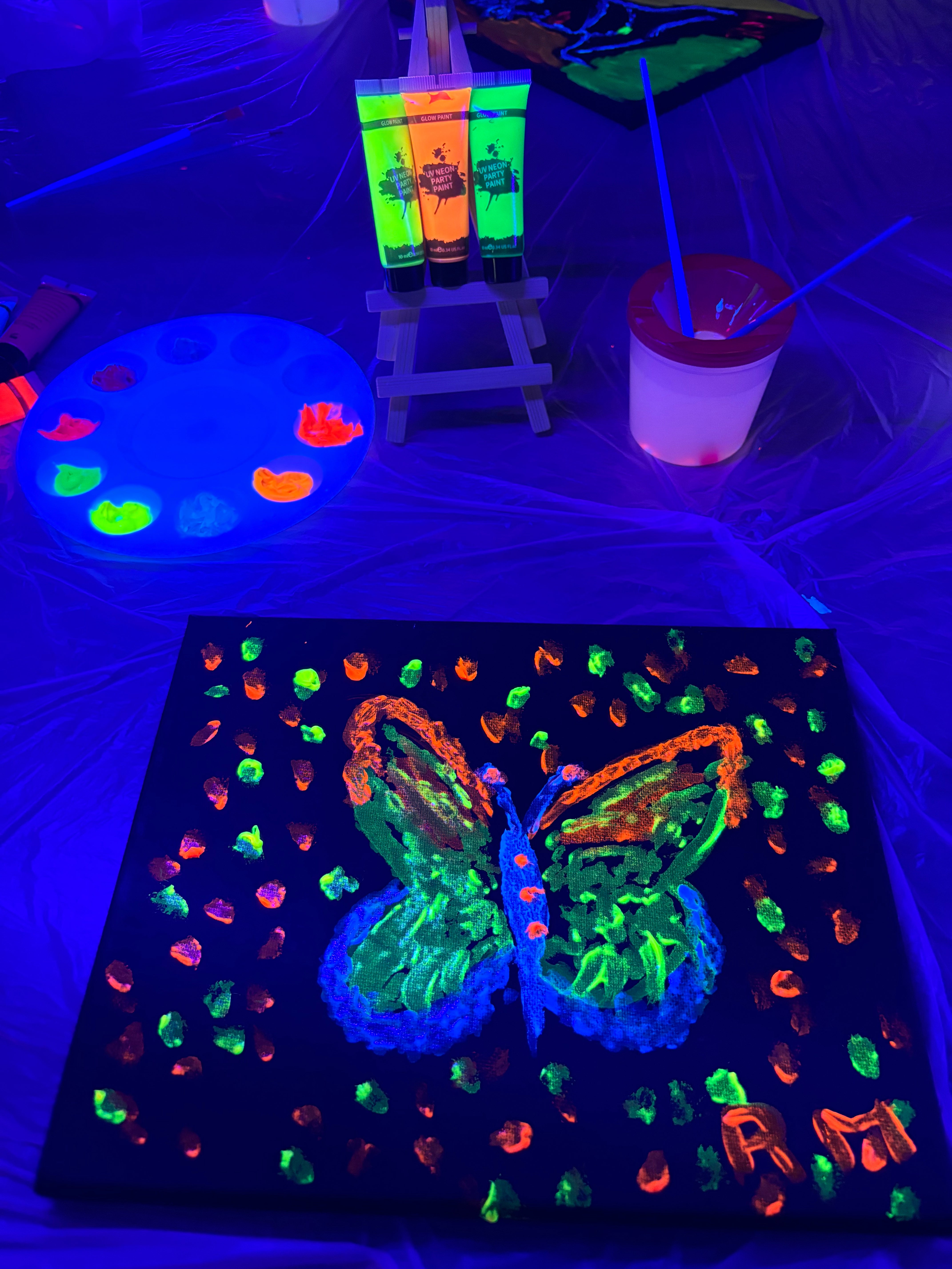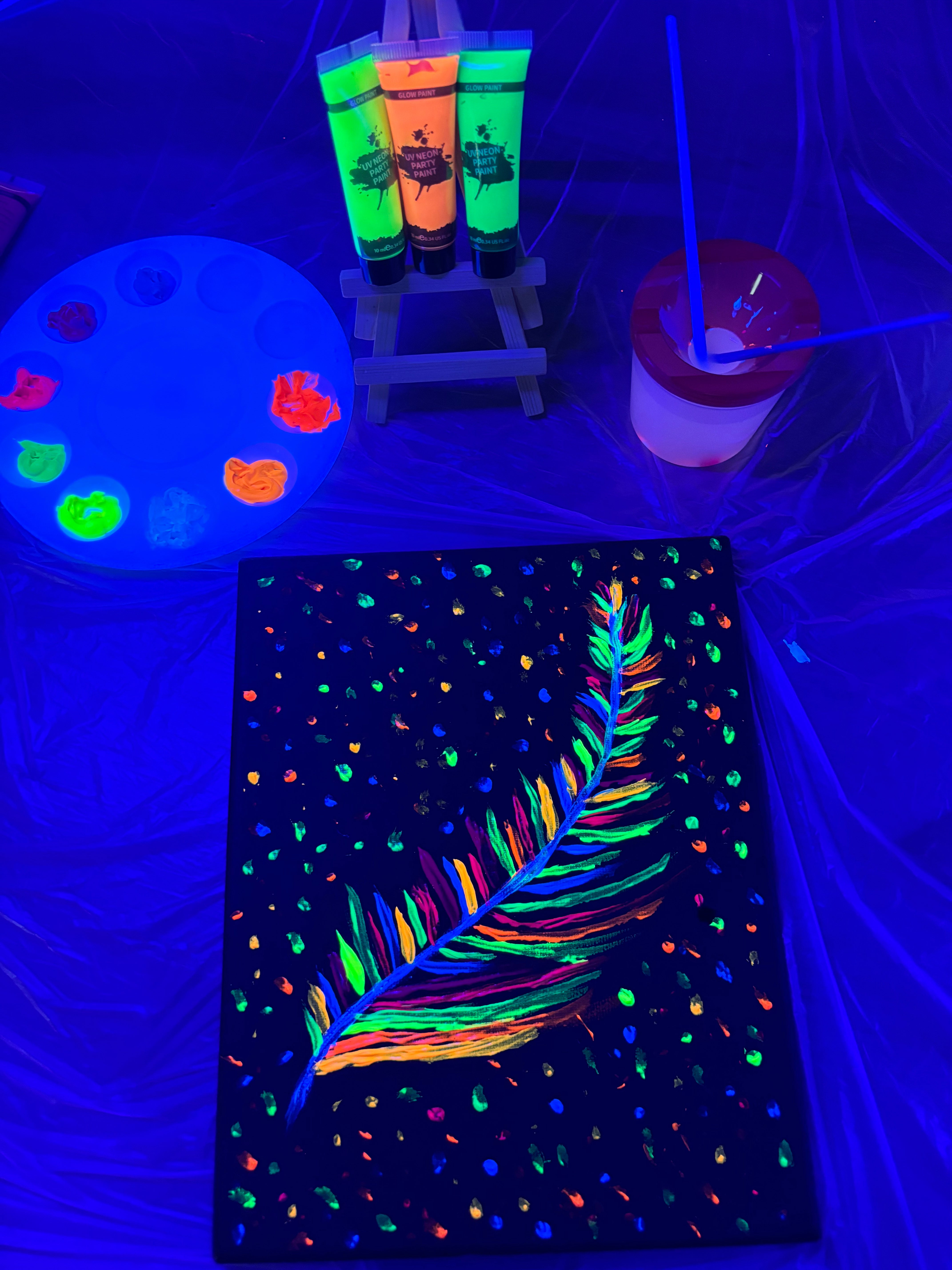 Toiles noires, néons, couleurs flashy : tout est là pour une soirée artistique inoubliable.